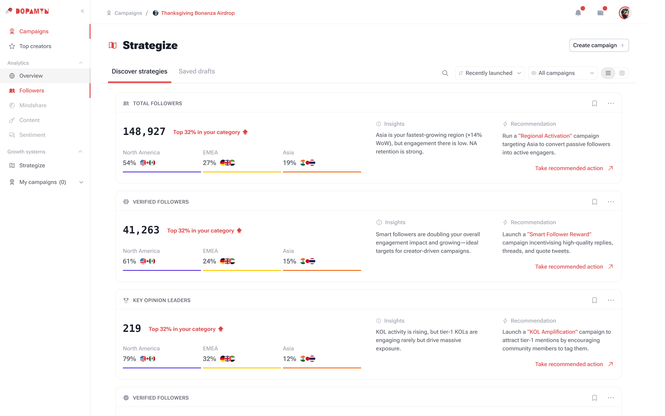 Growth campaigns based on real gaps like regional activation, retention drives.
